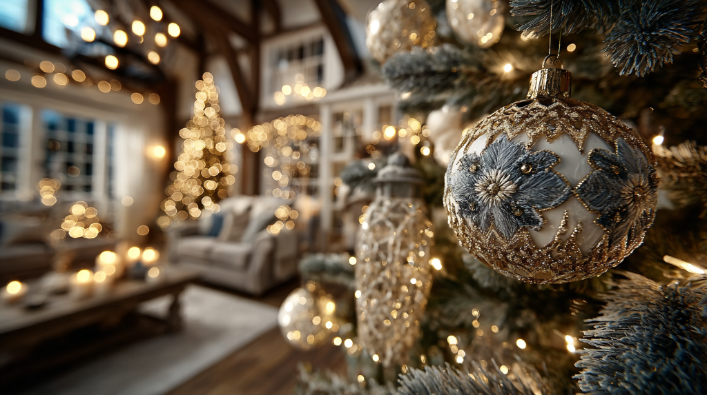 Начинайте с крупных элементов в нижней и средней части ёлки, постепенно переходя к более мелким и лёгким украшениям на верхушке. Распределяйте декор равномерно по глубине, не только на внешних ветвях.