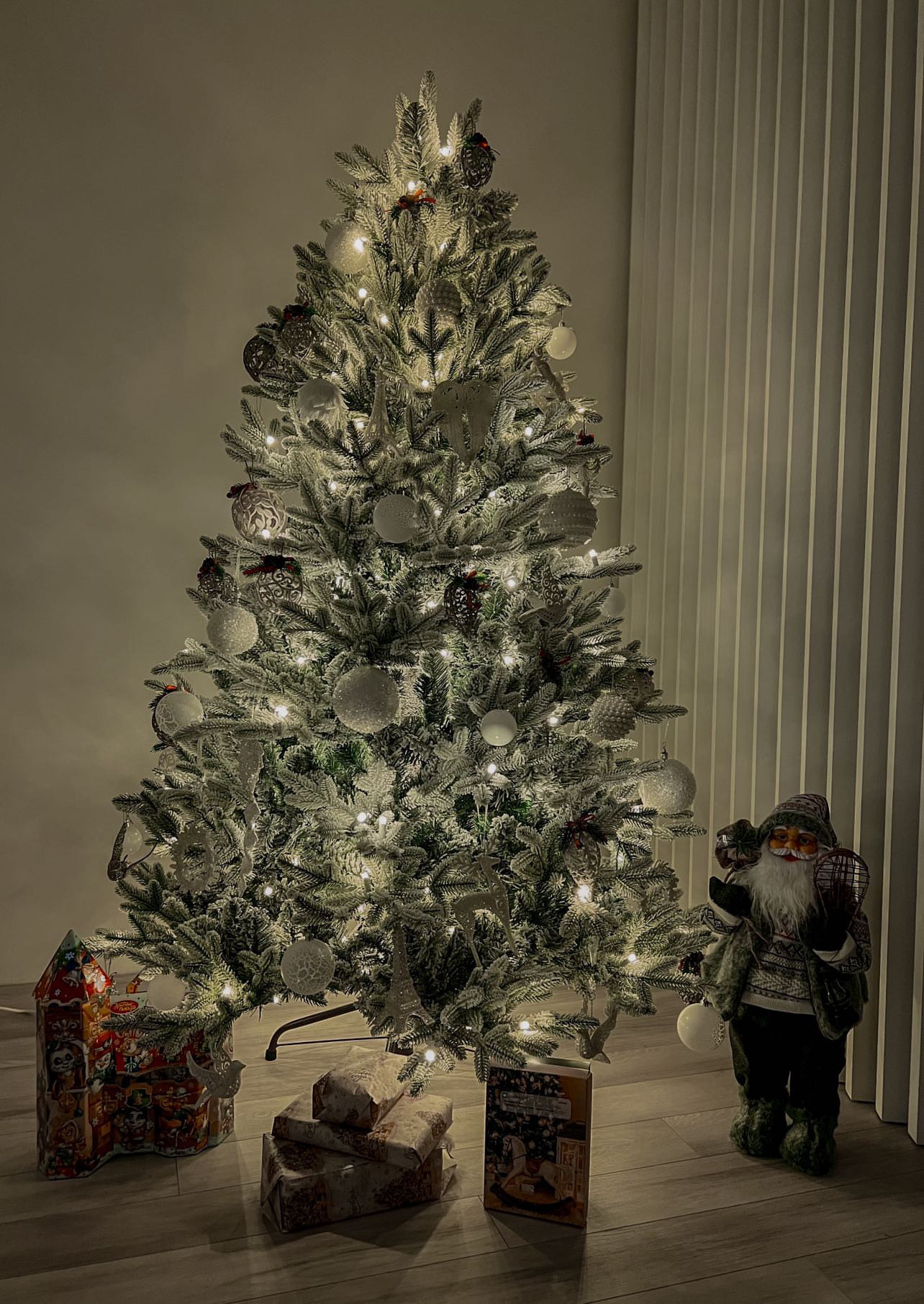 Каркас из нержавеющей стали гарантирует устойчивость к перепадам влажности и температуры. Ваша ель будет выглядеть безупречно как в уютной гостиной, так и под открытым небом.