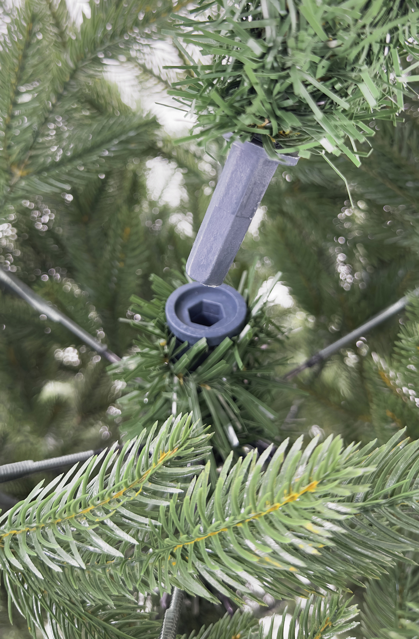 В отличие от проволочных креплений, используемых у других производителей, наша система предотвращает порезы и царапины во время сборки ели.